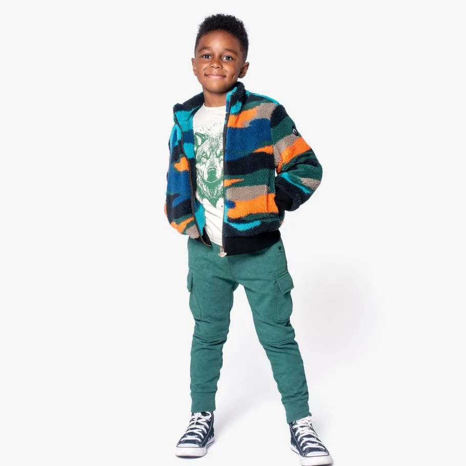 Cozy up in style with Appaman’s Woodland Sweatshirt in Autumn Sunset. This super fuzzy camo-patterned beauty features a zipper, front pockets, and cuffed wrists and waistband. Match it effortlessly with our Highland Sweats for a coordinated fall look that’s as vibrant as the season itself.