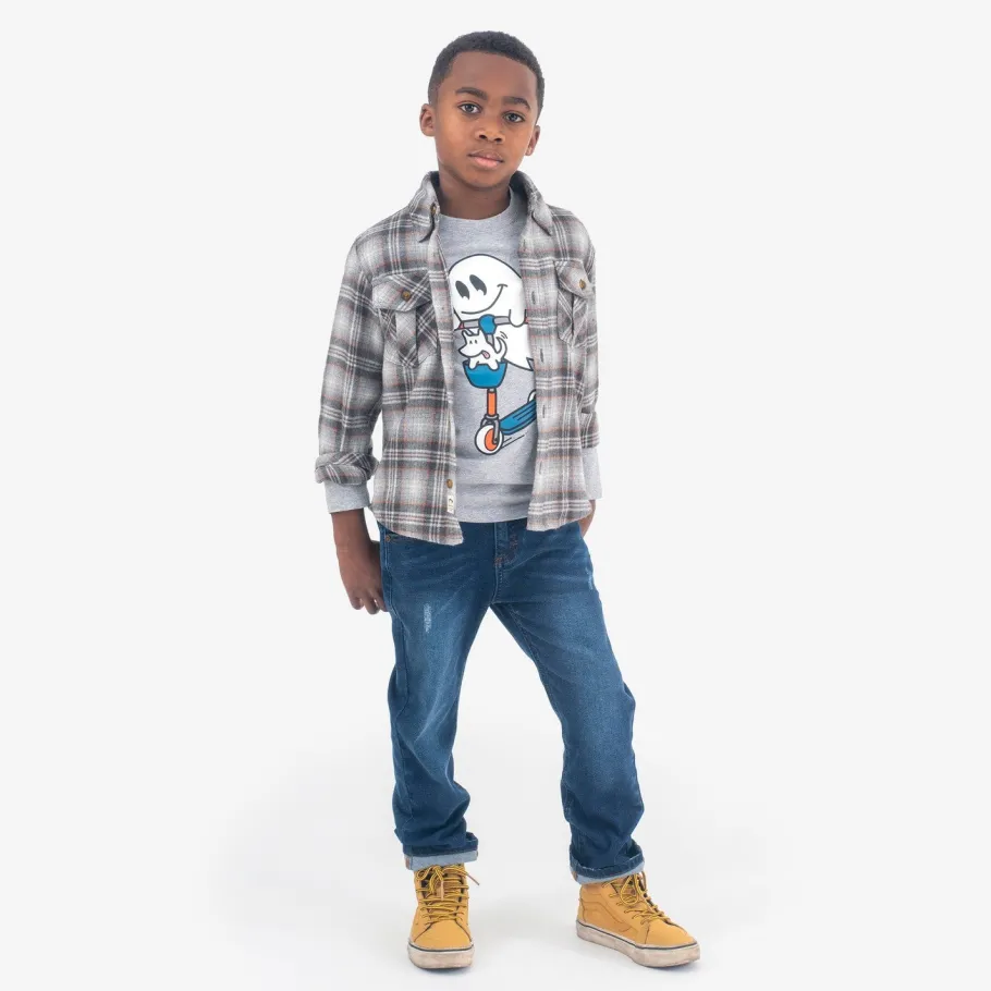 Appaman’s boys flannel shirt in Grey and Orange Plaid is here! Crafted from 100% cotton, this shirt is not only incredibly soft and cozy, but also a stylish addition to your little boy’s fall wardrobe. Whether he’s headed to school or a family outing, this flannel is sure to make a statement and elevate his fashion game. Get ready to witness his fashion evolution with this must-have piece from Appaman.