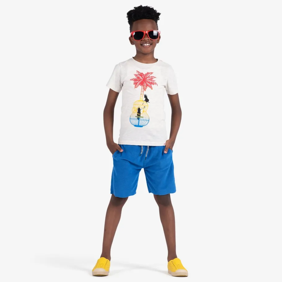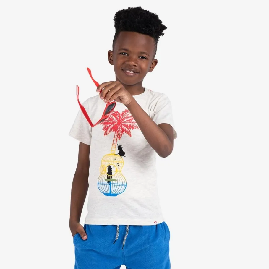 Strum into style with Appaman’s Song Birds Graphic Tee in White! This short-sleeve graphic tee turns birdcages into rock stages, with a guitar-shaped cage and a palm tree fingerboard. It’s the only shirt that’ll have you tweeting a rock ballad! Made of 100% cotton, because even cool birds appreciate a comfy tee. Rock on with Appaman – where feathers meet frets in the trendiest jam session around!