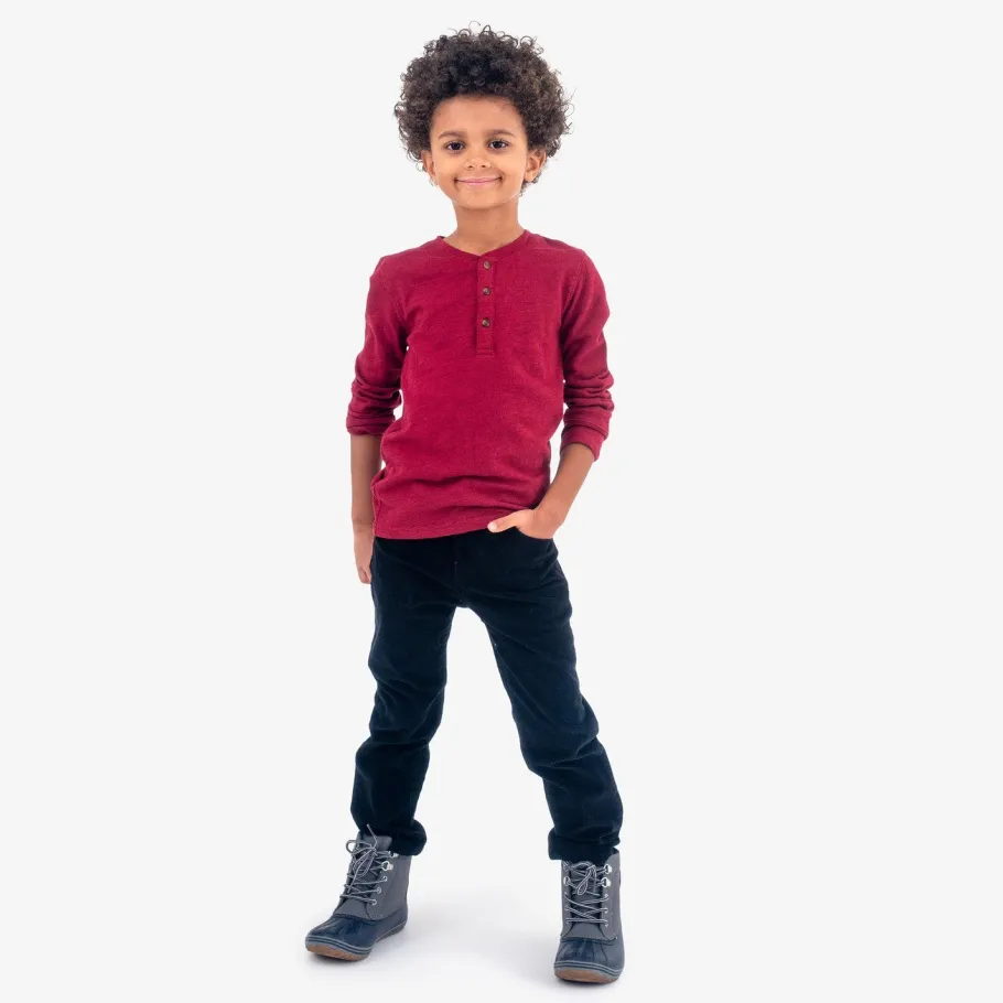 The Allday Henley in Chili Pepper is the perfect long sleeve shirt in a fiery chili pepper color is perfect for your little boy. Made with soft and comfortable fabric and of 100% cotton, it’s perfect for everyday wear. The shirt features a classic design with a button-up front. It’s easy to dress up or down, making it a versatile addition to any wardrobe. Your little one will look stylish and feel comfortable in this must-have shirt.