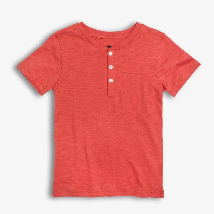 Meet Appaman's latest for boys – the Day Party Henley in Coral. This classic half-button-up shirt is your go-to fo…