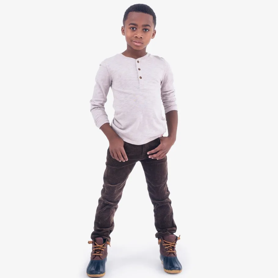 Appaman’s Skinny Cords in Brown – the perfect pants for your little gentleman’s next formal casual event. With corduroy ribbing that adds both comfort and style, these pants are a must-have for any fashion-forward kid. So go ahead, let him show off his style with the Skinny Cords.
