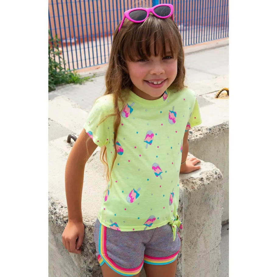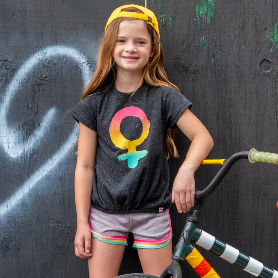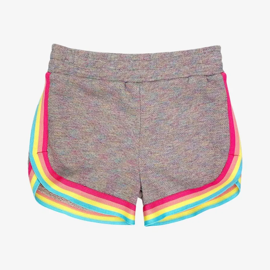 Hit the playground with these rainbow trimmed soft shorts. Offers a comfy and sporty look.