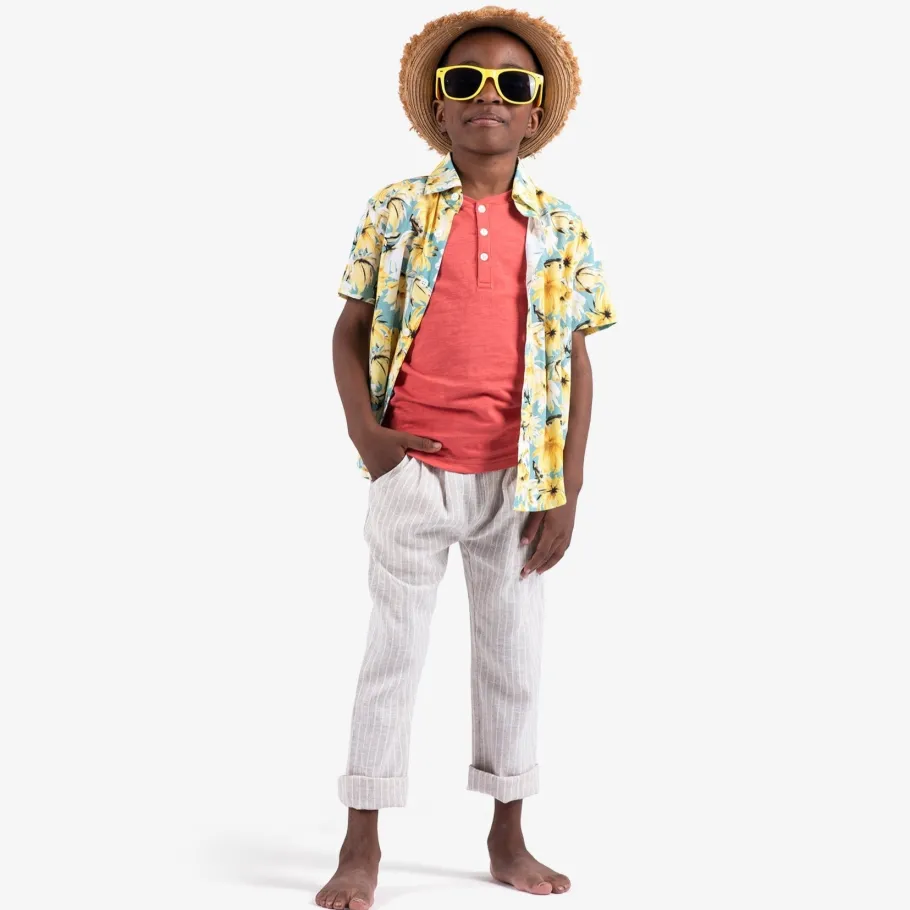 These linen blend pants are a perfect addition to his warm weather wardobe. We took everything kids love about sweats — the comfort, laid back look, and high durability– and turned them into a pant that brings posh and class.