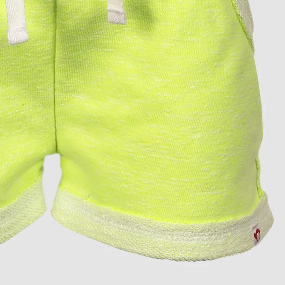 These medium weight knit shorts are ideal for playtime and have two raw-edge pockets and cool contrast stitching.