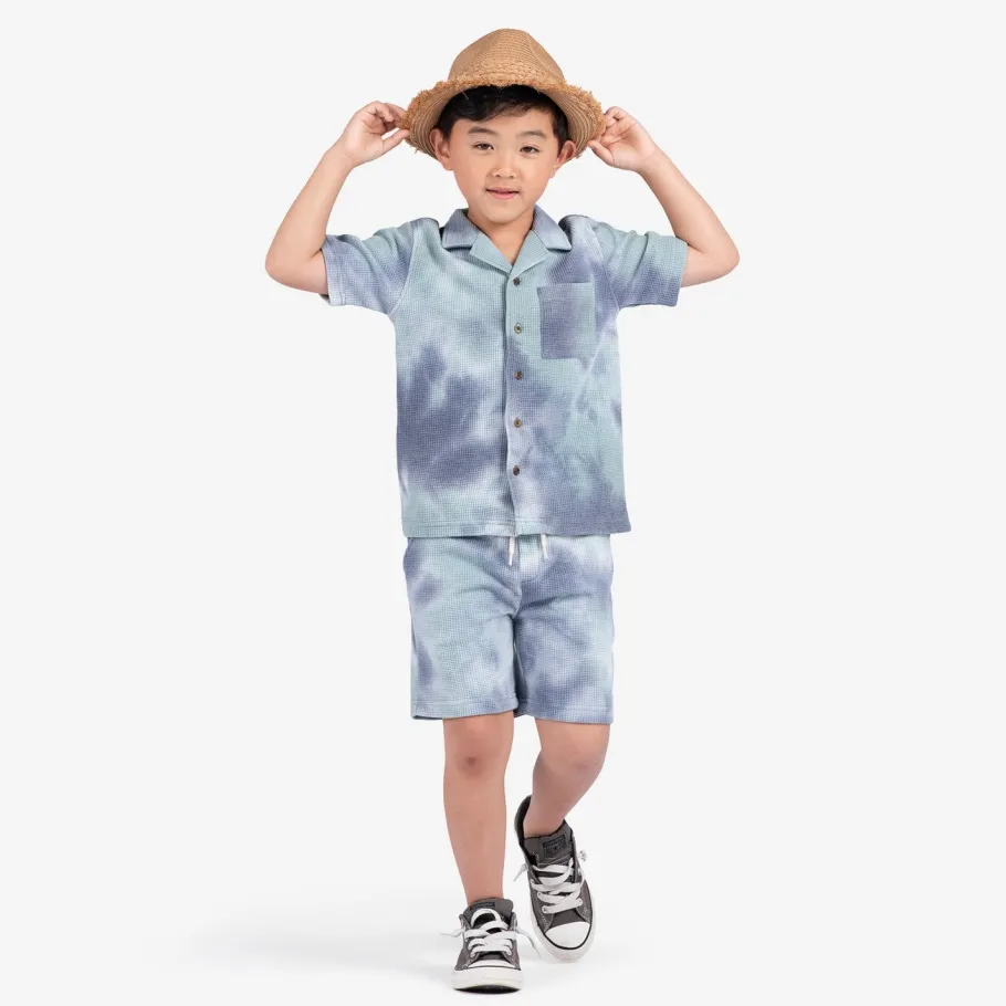 Dive into style with Appaman’s Resort Shorts in Seafoam Tie Dye. The dark and light blues create a beach-inspired masterpiece. Waffle cut for precision, these shorts feature front and back pockets, plus drawstrings for a tailored fit. Slip into these shorts and let the seafoam tie dye redefine your casual cool in a flash! Match with our Resort Shirt in Seafoam!