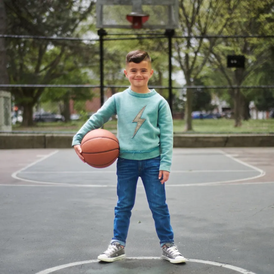 The coolest crewneck yet, the Lightning Highland Sweatshirt is a staple. With a washed denim look, make a statement.