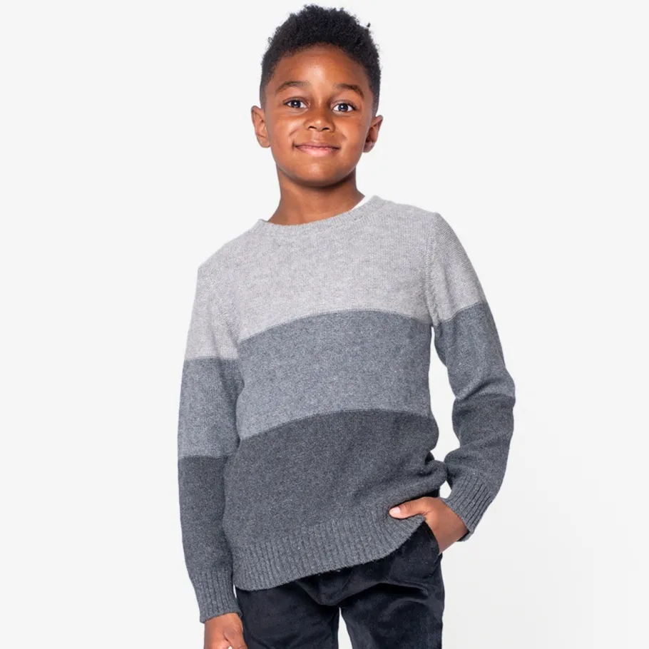 The Kos Sweater in Grey Ombre is a modern yet classic look for a boy’s sweater. With soft fabrics and quality cuts, dress your little one for a nice dinner or winter party.