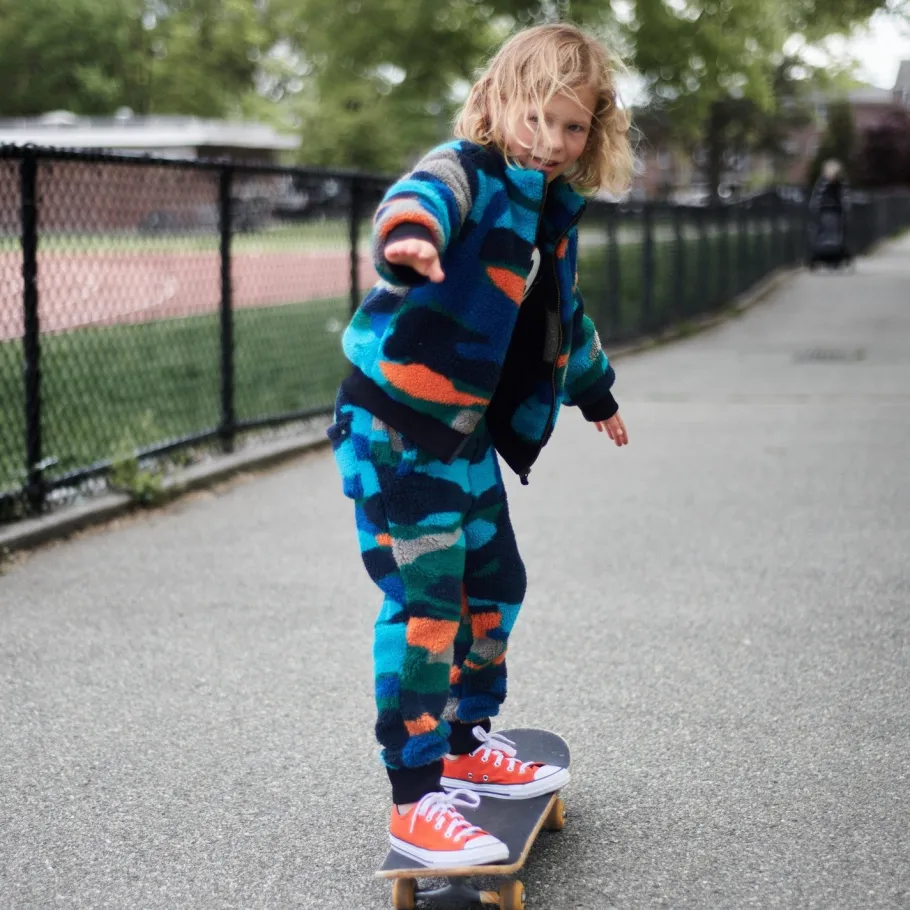 Cozy up in style with Appaman’s Woodland Sweatshirt in Autumn Sunset. This super fuzzy camo-patterned beauty features a zipper, front pockets, and cuffed wrists and waistband. Match it effortlessly with our Highland Sweats for a coordinated fall look that’s as vibrant as the season itself.