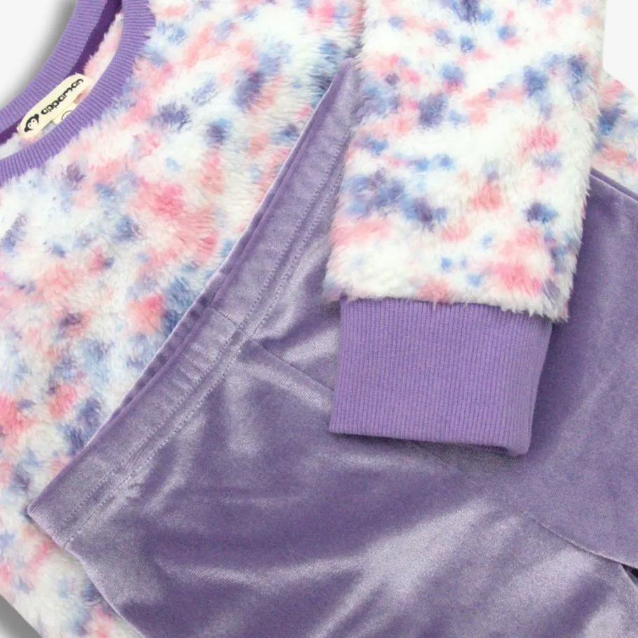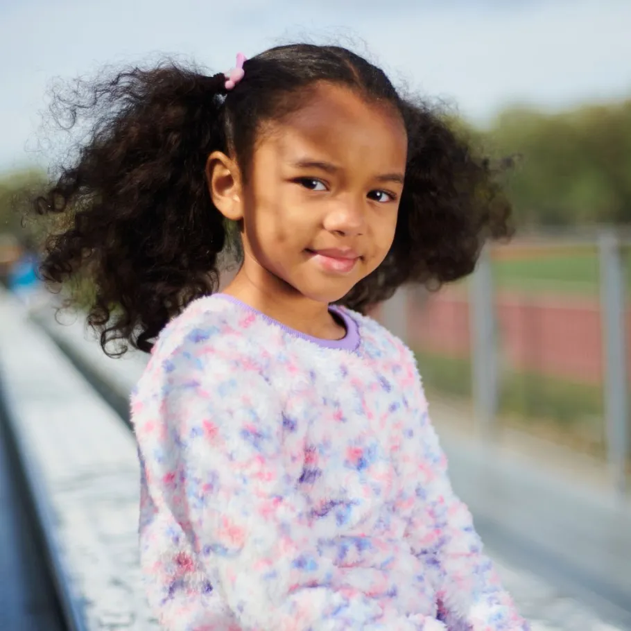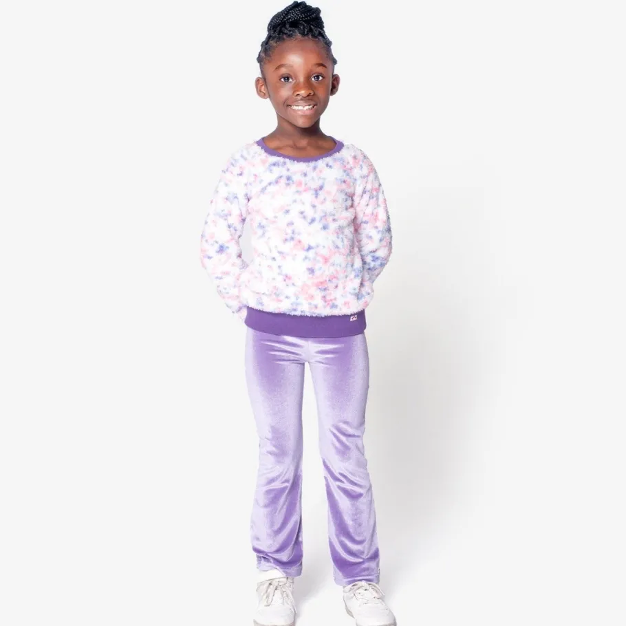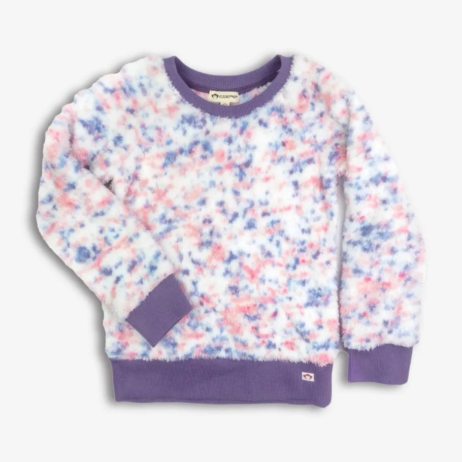Meet the Willow Top in Speckled Cloud! A slice of birthday cake you can wear! This cozy sweater features a fluffy faux fur texture, charming speckled design, and dark lavender purple waistband and arm cuffs. Get ready to add a sprinkle of whimsy to your wardrobe with the Willow Top!