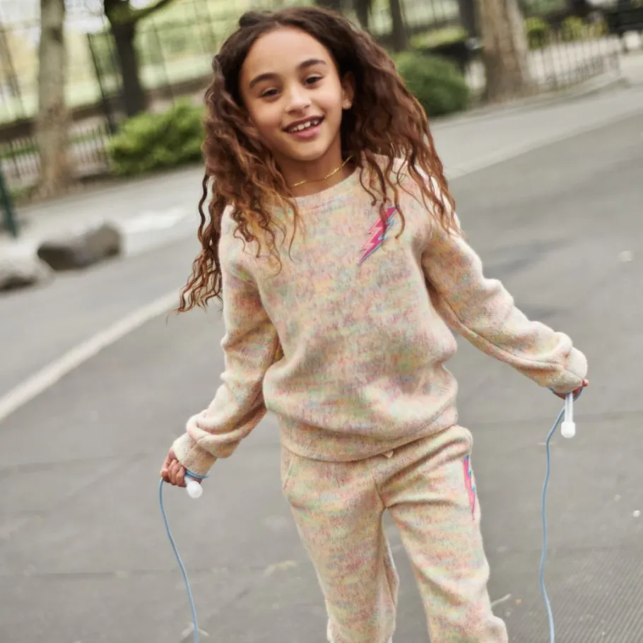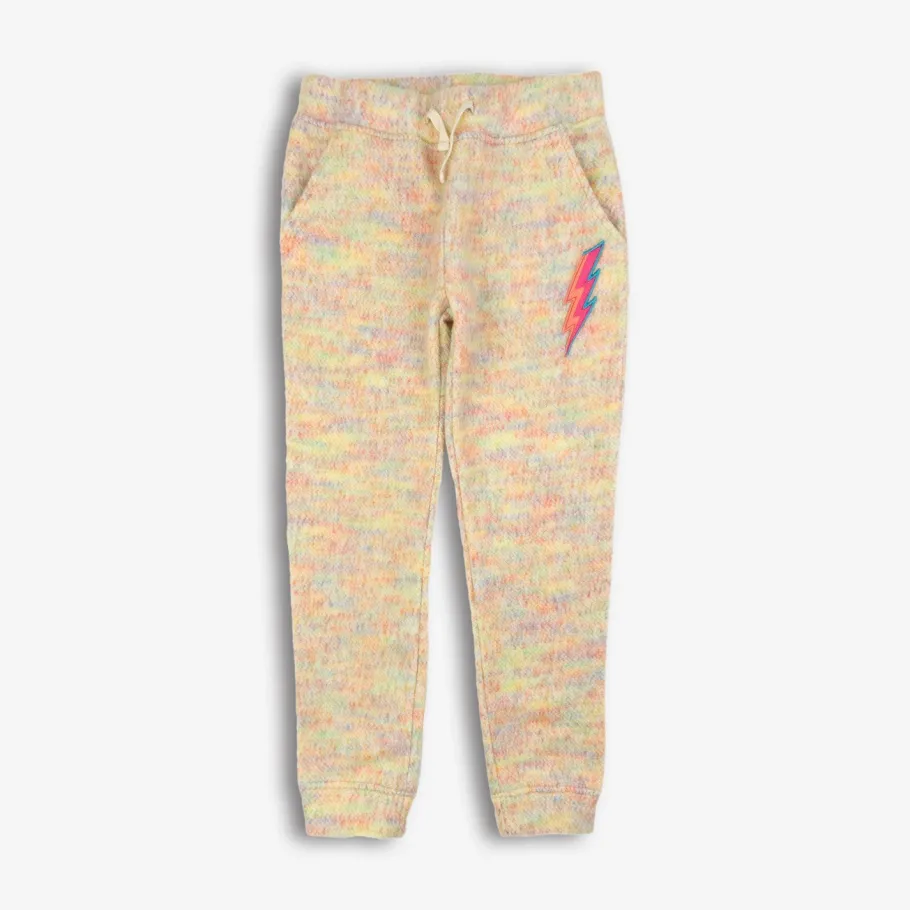 Super-soft multi-colored joggers with a lightning bolt patch, drawstrings, and pockets. Pair these joggers with our matching Lightning Bolt Ruby Sweatshirt.