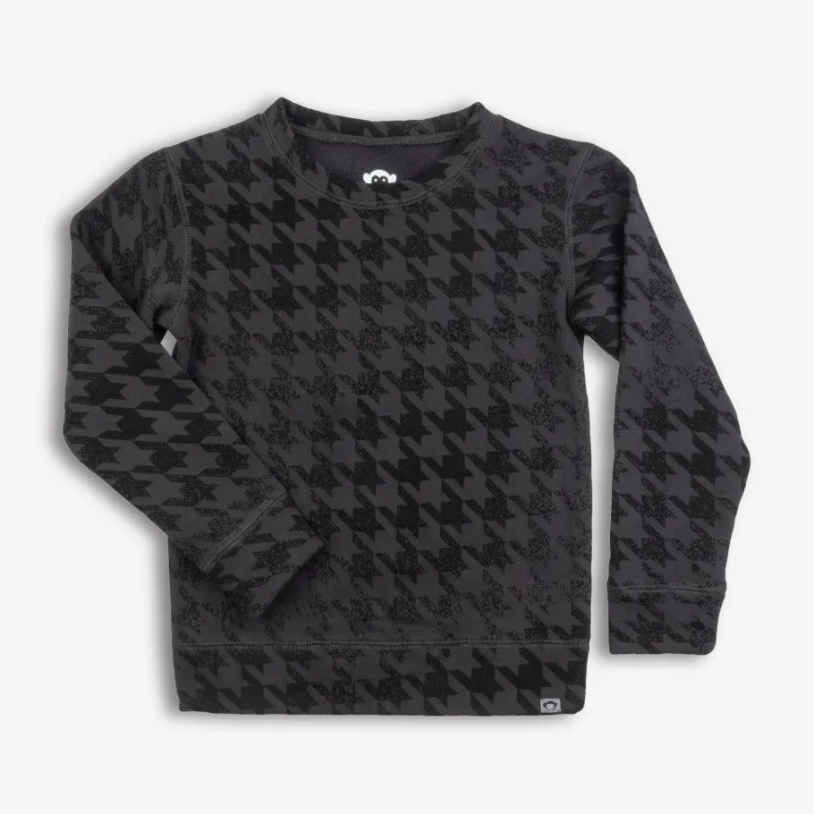 Elevate your little one's wardrobe with our Revel Crewneck in Black Houndstooth. This classic hoodie features a time…