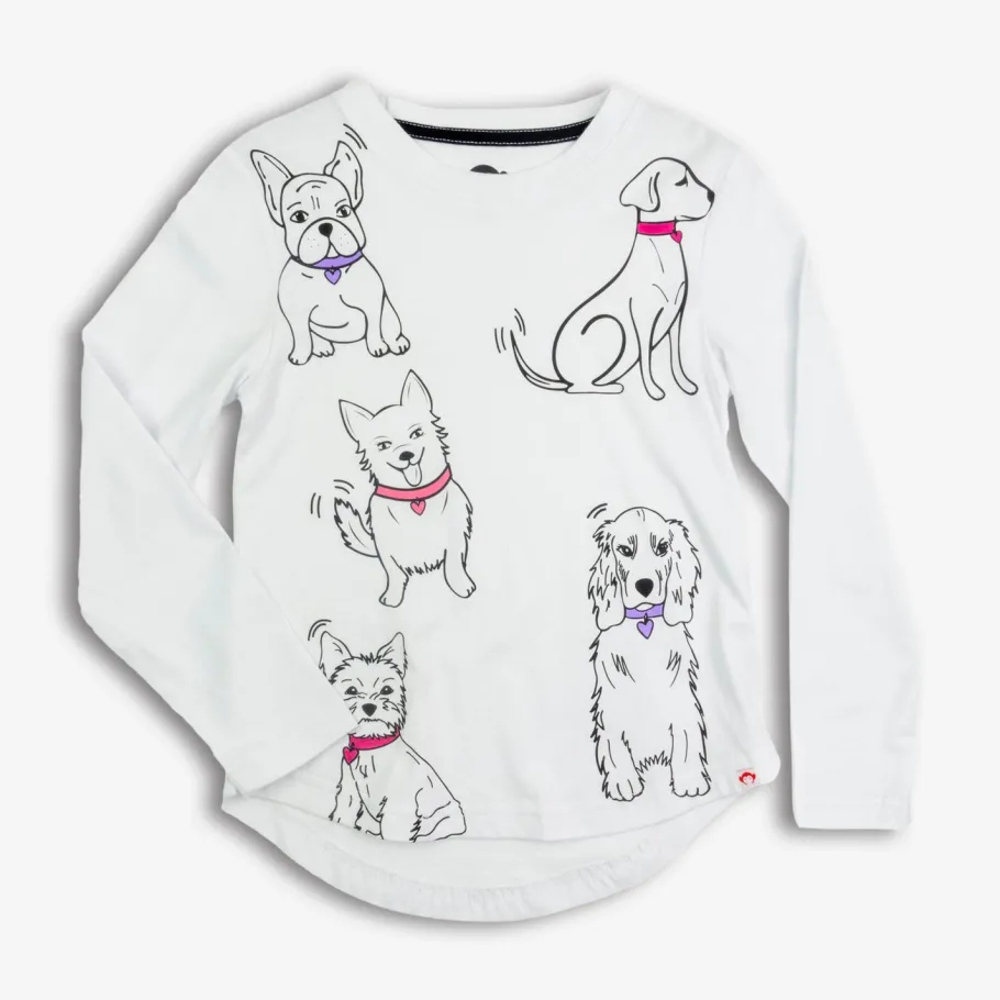 Crafted from 100% cotton for ultimate softness and comfort, this adorable white tee showcases a variety of playful dog breeds, making it perfect for any young pup enthusiast.
