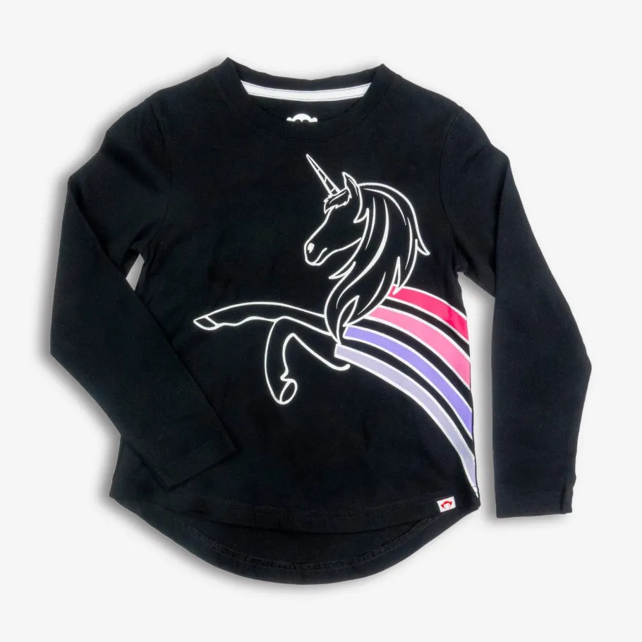 A whimsical addition to her wardrobe! Made from 100% cotton for all-day comfort, this tee features a charming unicorn graphic that sparks imagination and adds a magical touch to her everyday look. Perfect for playdates or lounging at home.