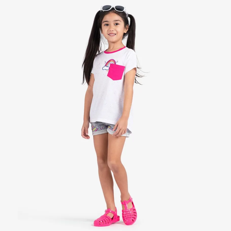 For your little rainbow, this tee is a magical statement piece that brings joy to any day. Comfort meets creativity in this classic pocket tee for girls that is perfect for every adventure.
