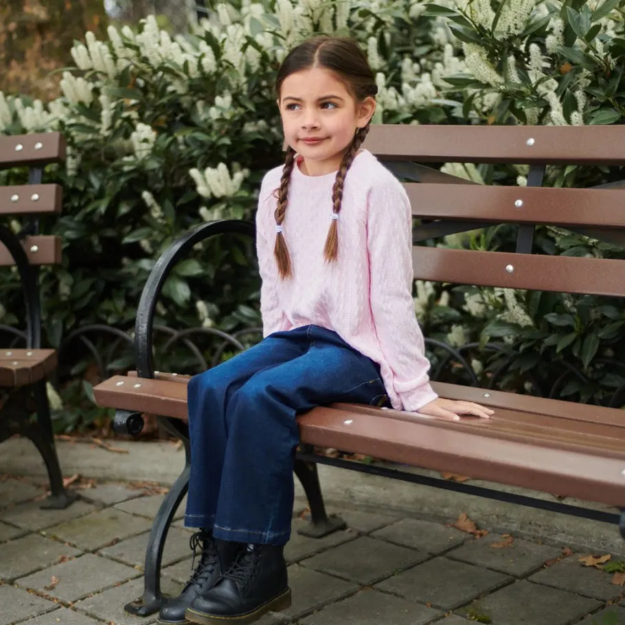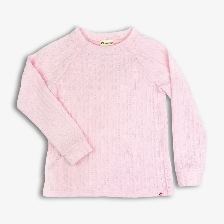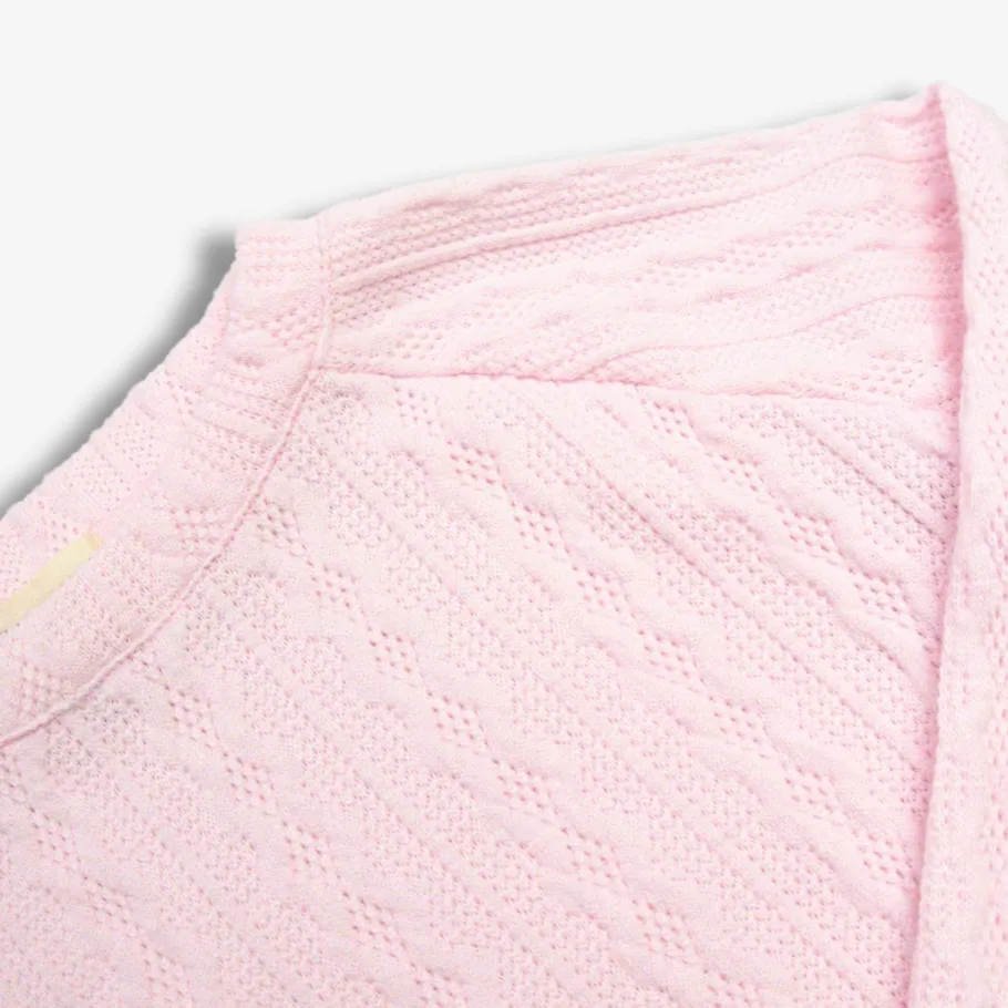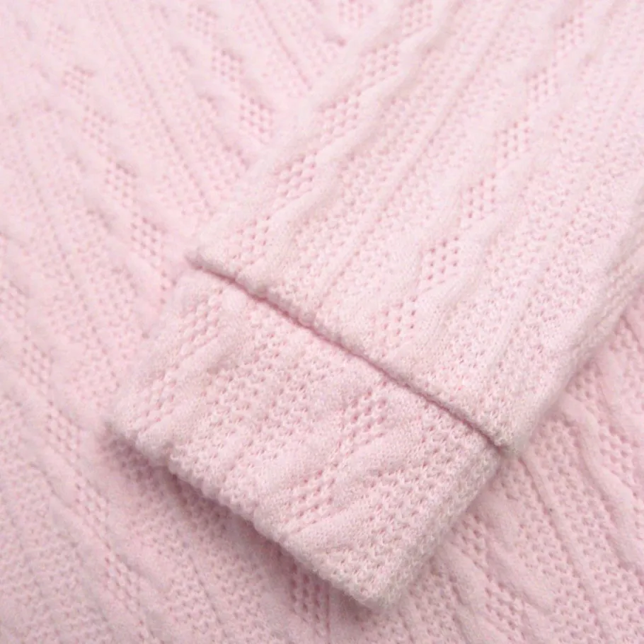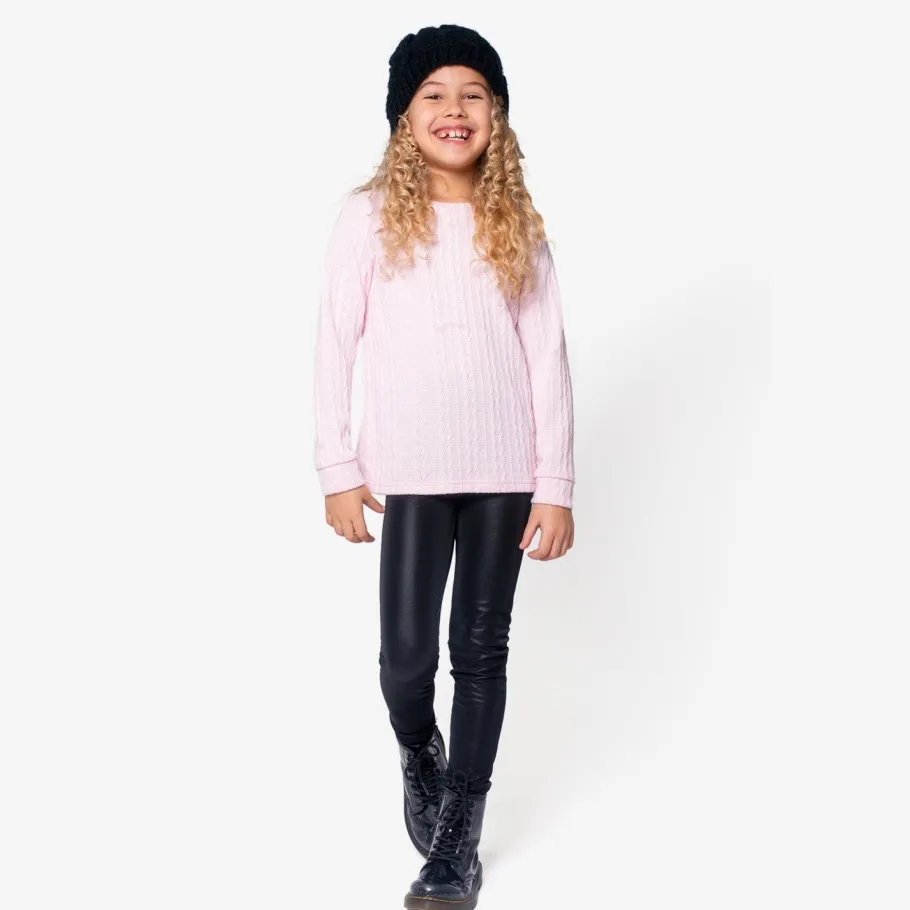 A perfect pop of pale pink and perfection. The Ruslana Top is now her go-to cable knit sweater.