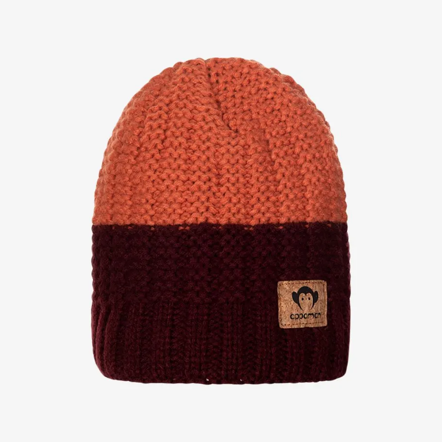 This slouchy colorblock hat is made with soft, chunky yarn and is lined with fleece for extra warmth. Sizing: S: 6-18 mo…