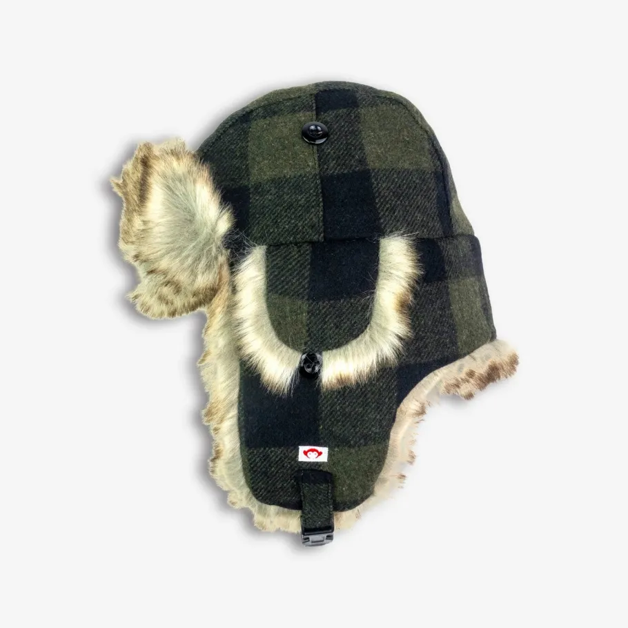 This green and black flannel trapper hat is bound to keep your little one warm this winter. With ear flaps, a faux fur lining, and a buckle to keep him secure and bundled.
