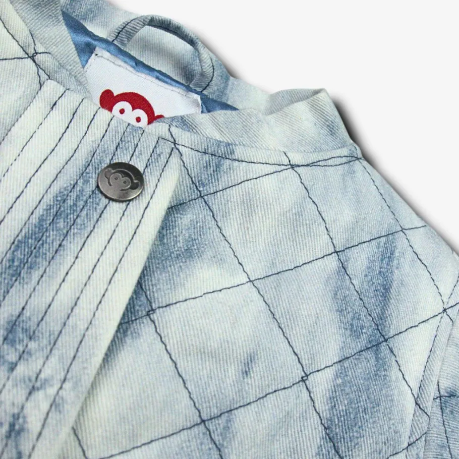 Appaman’s Hazel Jacket in Washed Denim is a timeless treasure destined to become a family heirloom, we’re calling it! This statement jacket boasts super light-washed tie dye on diamond-quilted denim, front pockets, and a full zipper and buttons for versatility and style. With its light blue satin inner lining, it’s the ultimate blend of fashion and functionality, promising to make a statement for generations to come.