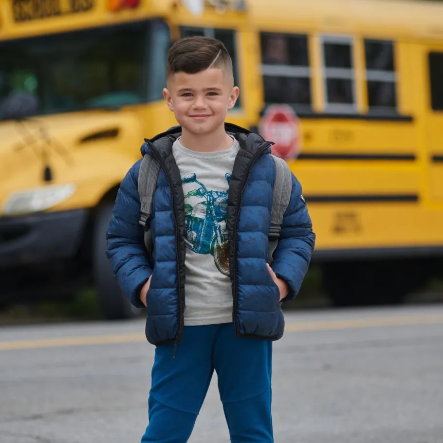 Two puffer jackets in one? Yep. Appaman’s Reversible Puffer in Blue Wave does just that. This puffer will keep your kiddo warm and stylish with blue hues and warm lining and fill. If he’s not feeling blue, he can wear black! Features pockets, zip, and a hood for good coverage. Built for warmth with Du Pont’ Sorona renewably sourced insulation. Sorona fabric retains its shape and design throughout the day and wears after wear and wash after wash.